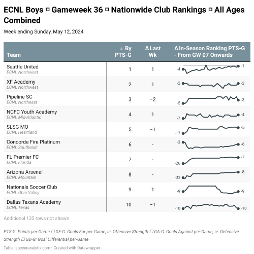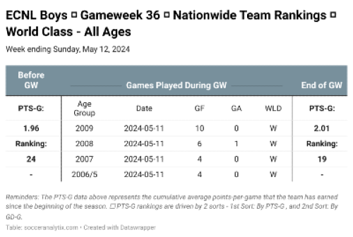 As a contrasting example, Northeast's World Class soccer club won 100% of its games. By improving its cumulative PTS-G by 0.05, it's now ranked 19th nationwide.