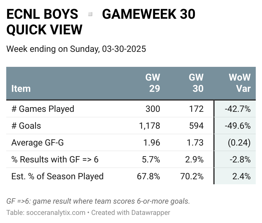 ECNL Boys Gameweek 30 ended on Sunday, March 30, 2025.
