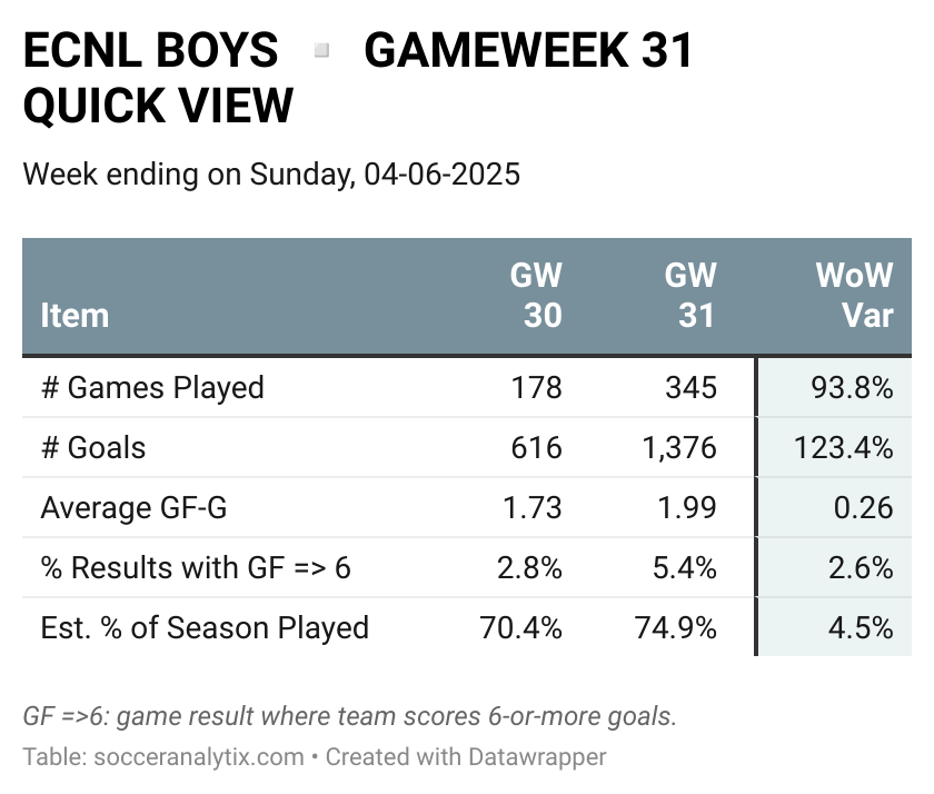 ECNL Boys Gameweek 31 ended on Sunday, April 6, 2025.