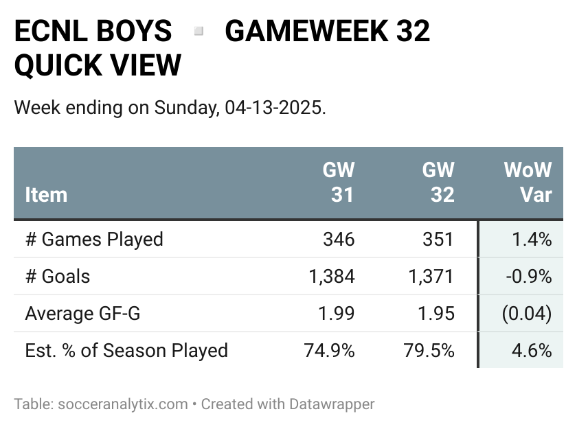 ECNL Boys Gameweek 32 ended on Sunday, April 13, 2025.