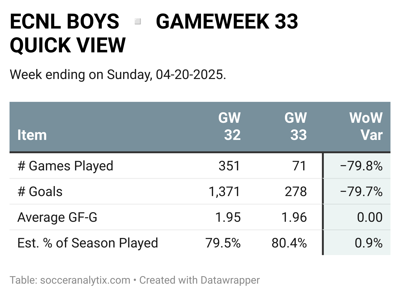 ECNL Boys Gameweek 33 ended on Sunday, April 20, 2025.