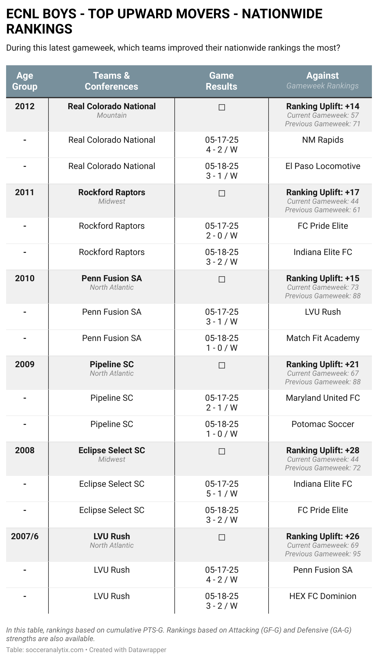 ECNL Boys Gameweek 37 ended on Sunday, May 18, 2025.